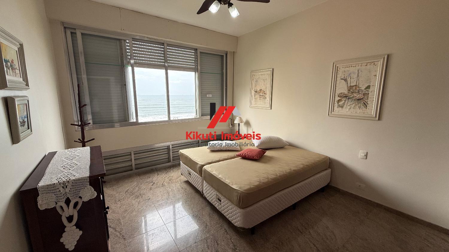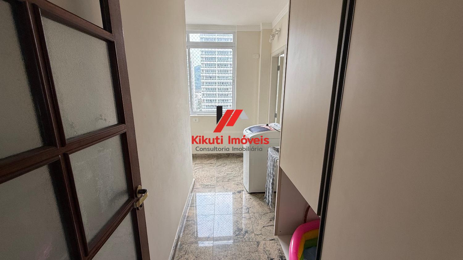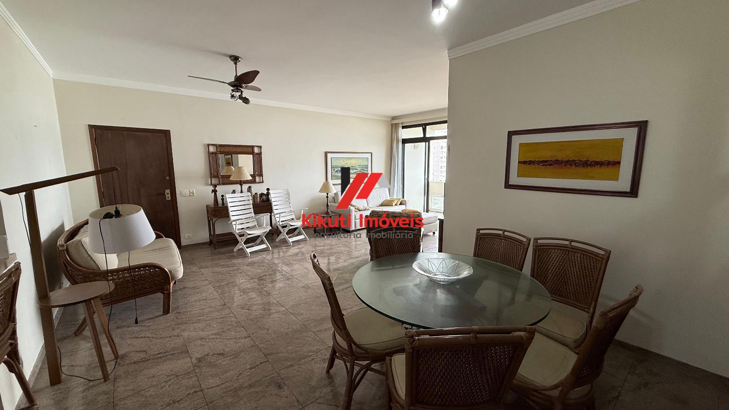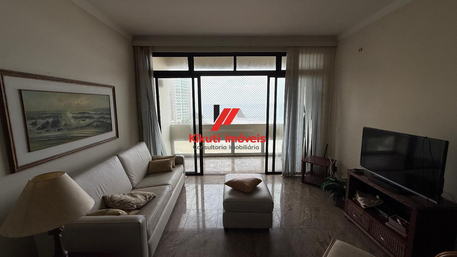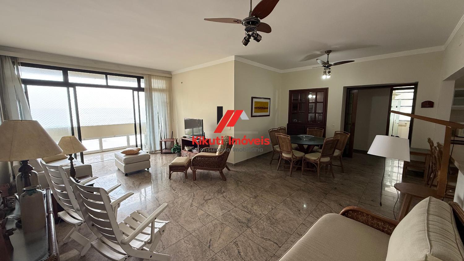 Apartamento com 190 metros quadrados de área útil,1 vaga de garagem 4 dormitórios mais dependência de empregado com Wc, 4 banheiros no total, entrada social e serviço, sala para 3 ambientes, varanda com vista mar, armários de cozinha e guarda roupas embutidos, ar condicionado. Prédio com 15 andares, 2 apartamentos por andar, churrasqueira na cobertura, área ampla com espaço coberto para festas, portões automáticos, portaria 24 horas, serviço de praia; próximo ao Restaurante Tahiti, Panificadora,Colégio e Faculdade Don Domênico, Supermercado Pão de Açúcar e Feira Artesanal.