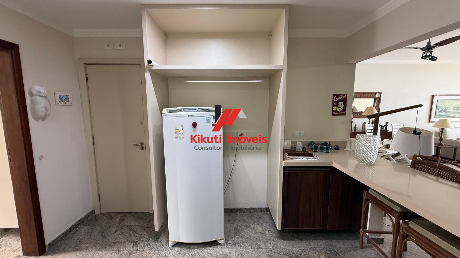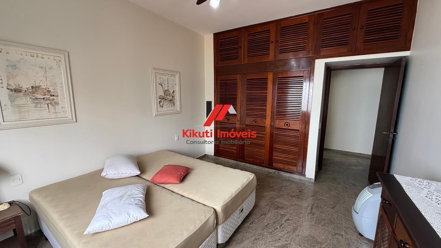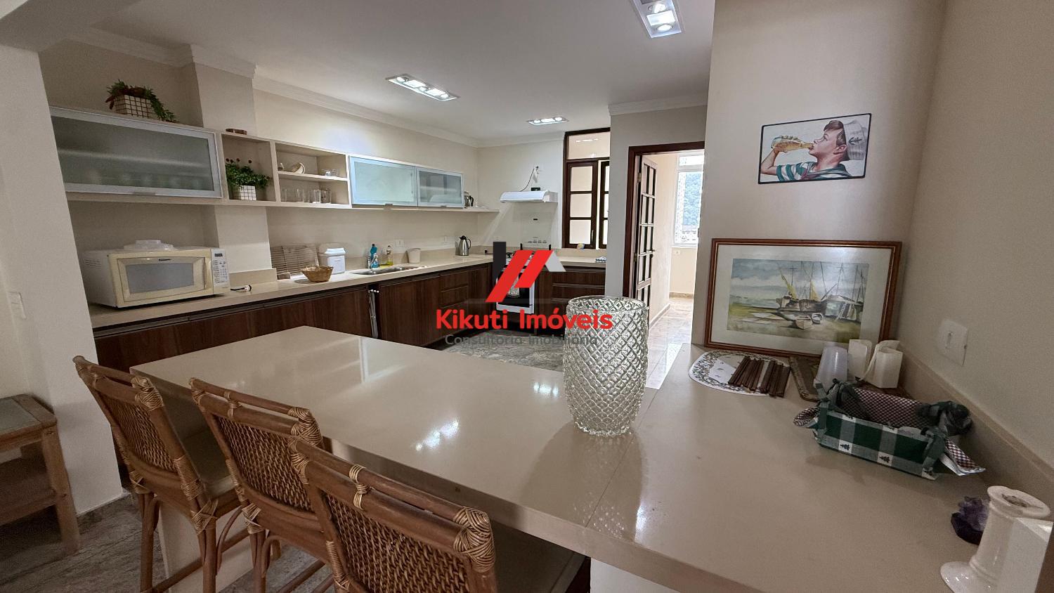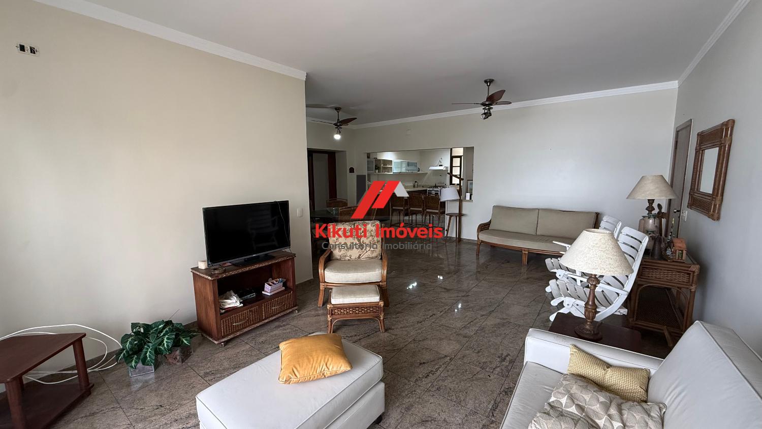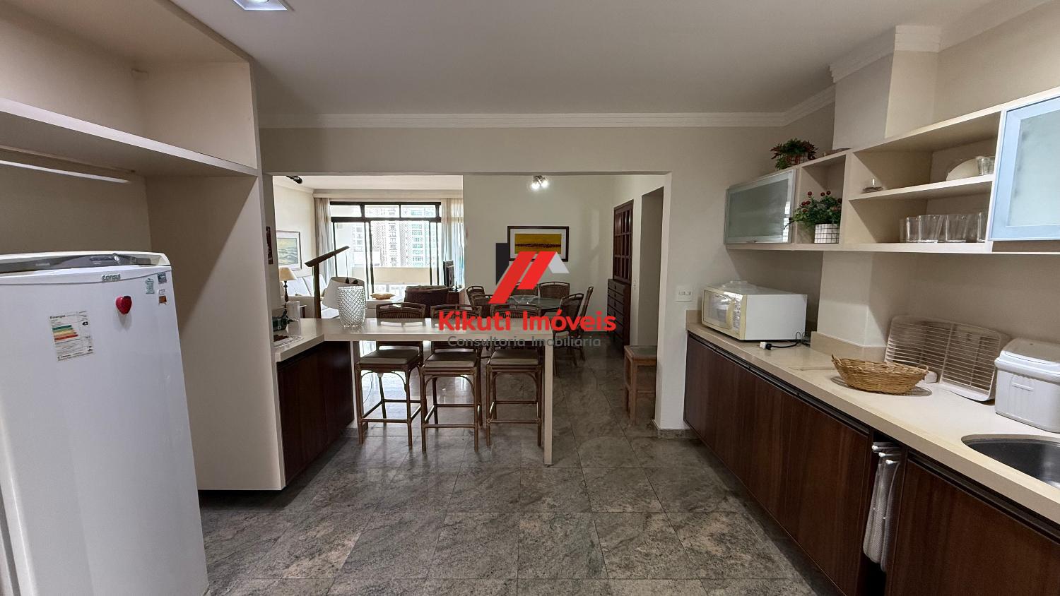 Apartamento com 190 metros quadrados de área útil,1 vaga de garagem 4 dormitórios mais dependência de empregado com Wc, 4 banheiros no total, entrada social e serviço, sala para 3 ambientes, varanda com vista mar, armários de cozinha e guarda roupas embutidos, ar condicionado. Prédio com 15 andares, 2 apartamentos por andar, churrasqueira na cobertura, área ampla com espaço coberto para festas, portões automáticos, portaria 24 horas, serviço de praia; próximo ao Restaurante Tahiti, Panificadora,Colégio e Faculdade Don Domênico, Supermercado Pão de Açúcar e Feira Artesanal.