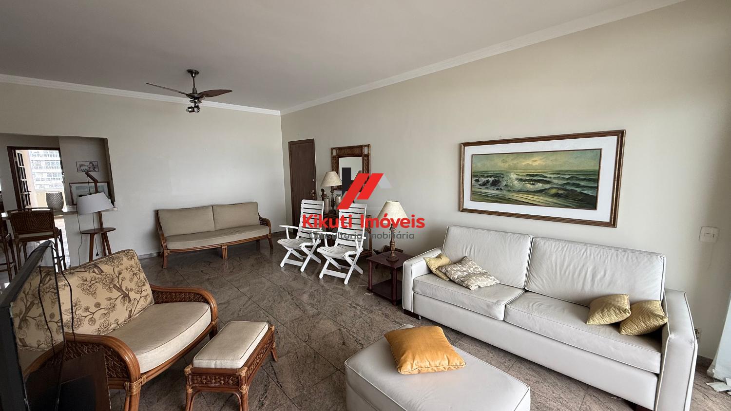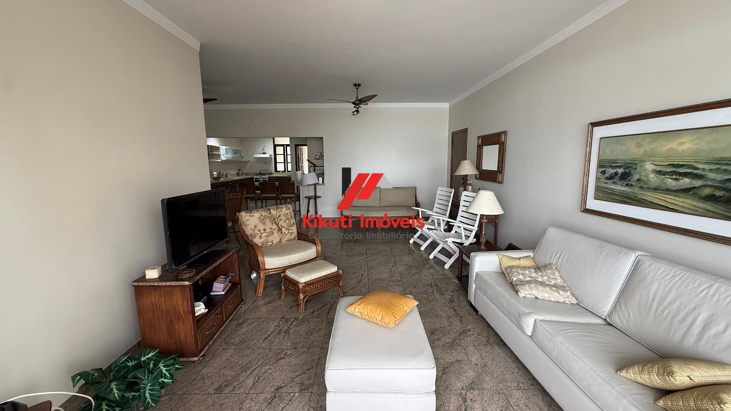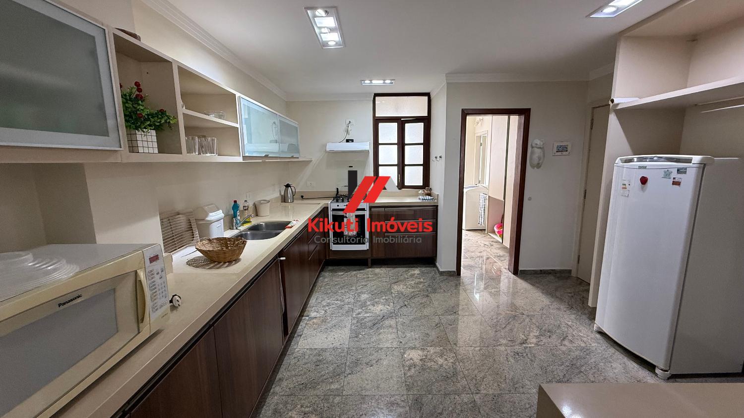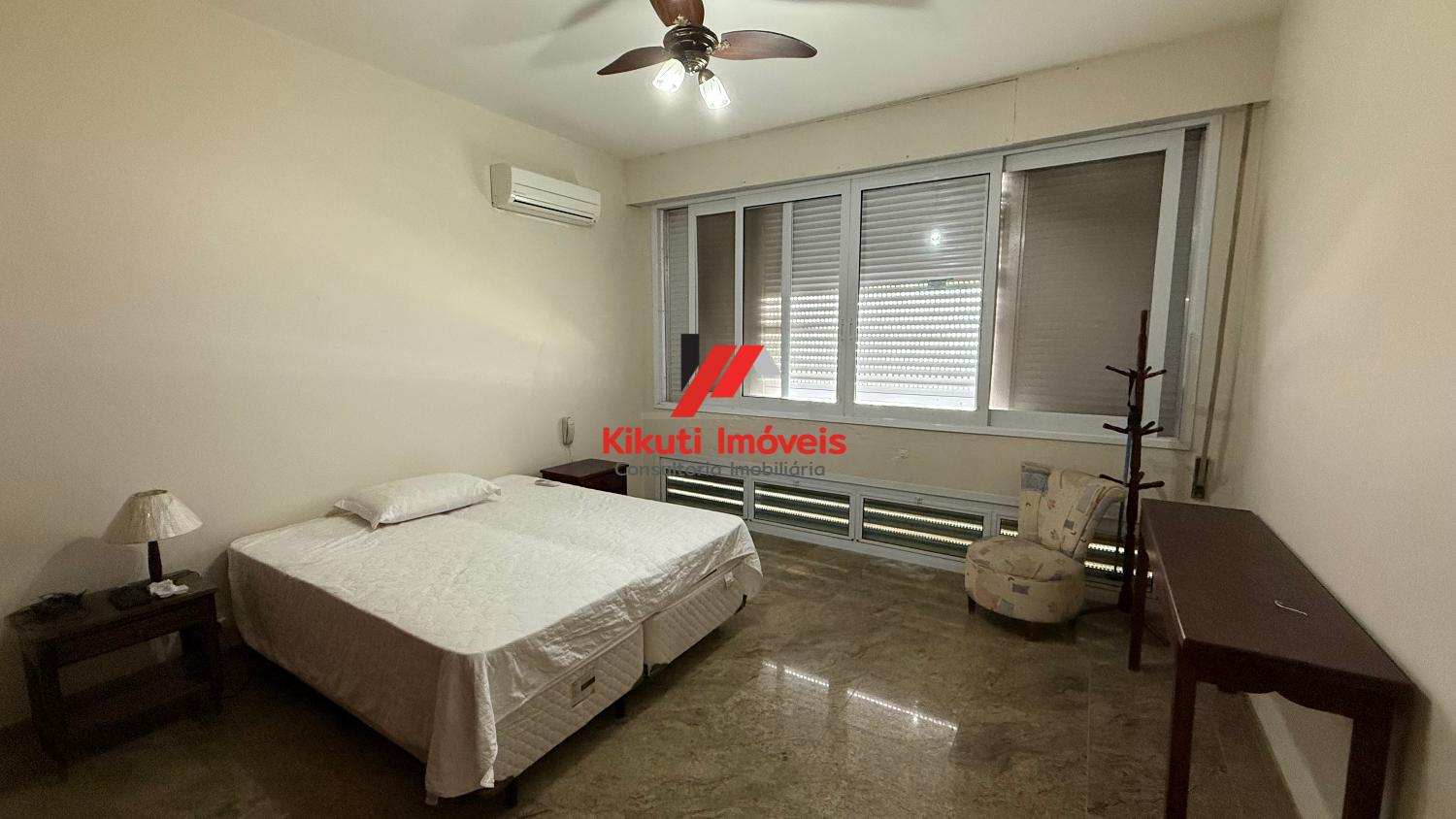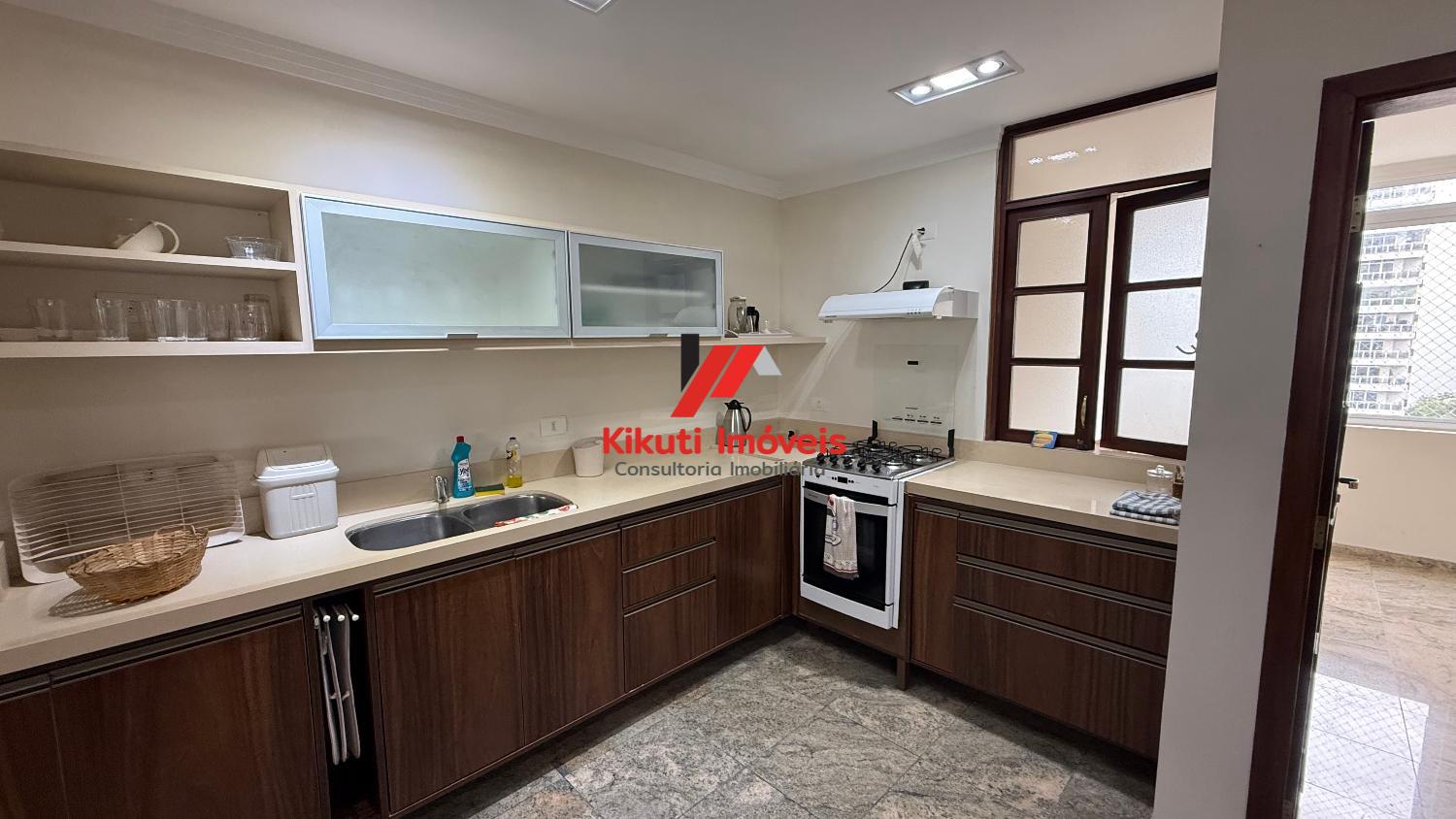 Apartamento com 190 metros quadrados de área útil,1 vaga de garagem 4 dormitórios mais dependência de empregado com Wc, 4 banheiros no total, entrada social e serviço, sala para 3 ambientes, varanda com vista mar, armários de cozinha e guarda roupas embutidos, ar condicionado. Prédio com 15 andares, 2 apartamentos por andar, churrasqueira na cobertura, área ampla com espaço coberto para festas, portões automáticos, portaria 24 horas, serviço de praia; próximo ao Restaurante Tahiti, Panificadora,Colégio e Faculdade Don Domênico, Supermercado Pão de Açúcar e Feira Artesanal.